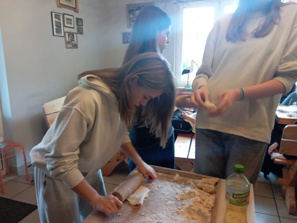 – osoba prowadząca demonstruje technikę przygotowania oraz zagniatania ciasta i przygotowania nadzienia